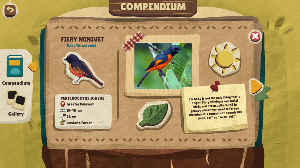 Explore the island! And when you find a bird that has landed on a nearby tree, interact with it to take a photo!